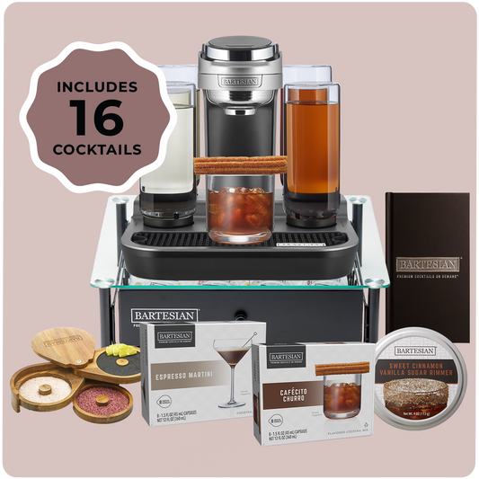 Designed for late nights and perfectly finished pours, the After Hours Café Bundle provides everything you need to create café-inspired cocktails at home. Featuring the Professional Cocktail Maker, Capsule Drawer, 2026 Cocktail Menu, Cafecito Churro, Espresso Martini, Sweet Cinnamon Vanilla Sugar Rimmer, and Acacia Bar Rimmer. This limited-edition bundle is available while supplies last.