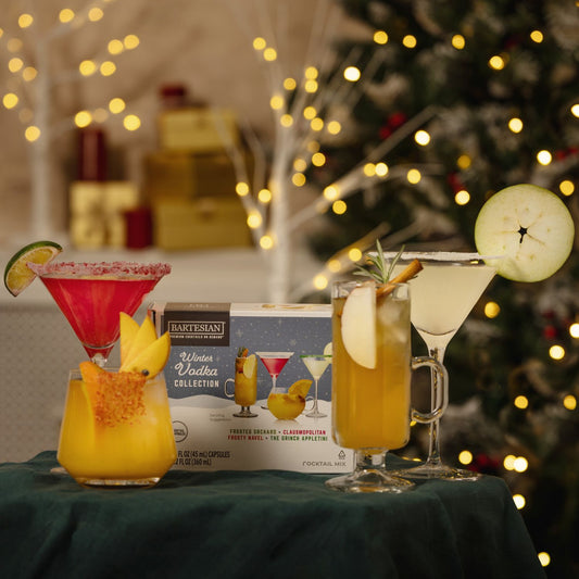 Discover the crisp elegance of Bartesian's Winter Vodka Collection, designed to bring a touch of sophistication to the frosty season. This limited-edition variety pack contains 2 each of 4 curated seasonal vodka cocktails: