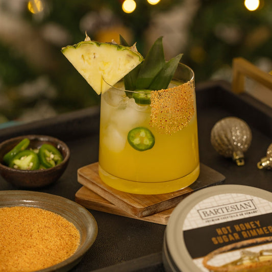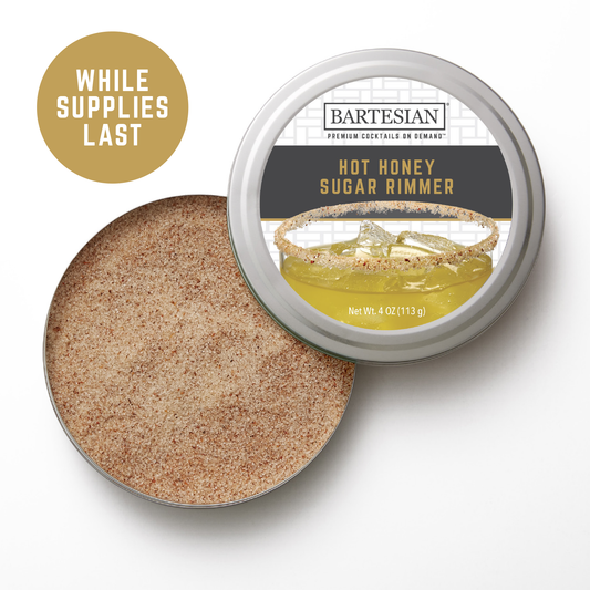 The Hot Honey Sugar Rimmer is a delicate dance of warm honey and subtle spice flavors. It's the perfect blend of sweet and heat, made to enhance Ginger Pear Noel, Holiday Spiced Old Fashioned, Jollypeño Margarita, Winter Pear-adise, Spicy Margarita, Bee's Knees, and Lemon Drop.